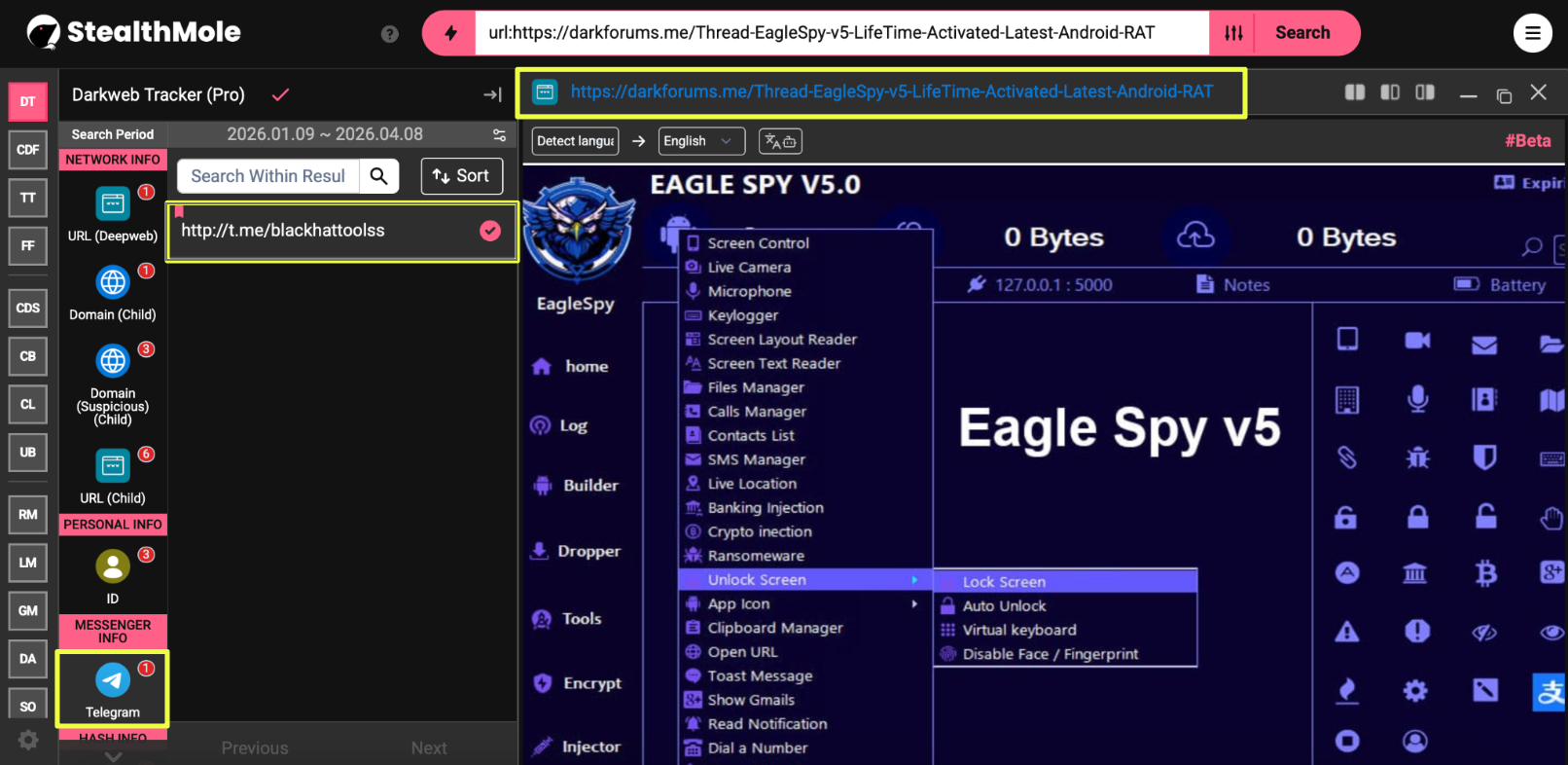 - https://darkforums.me/Thread-EagleSpy-v5-LifeTime-Activated-Latest-Android-RAT