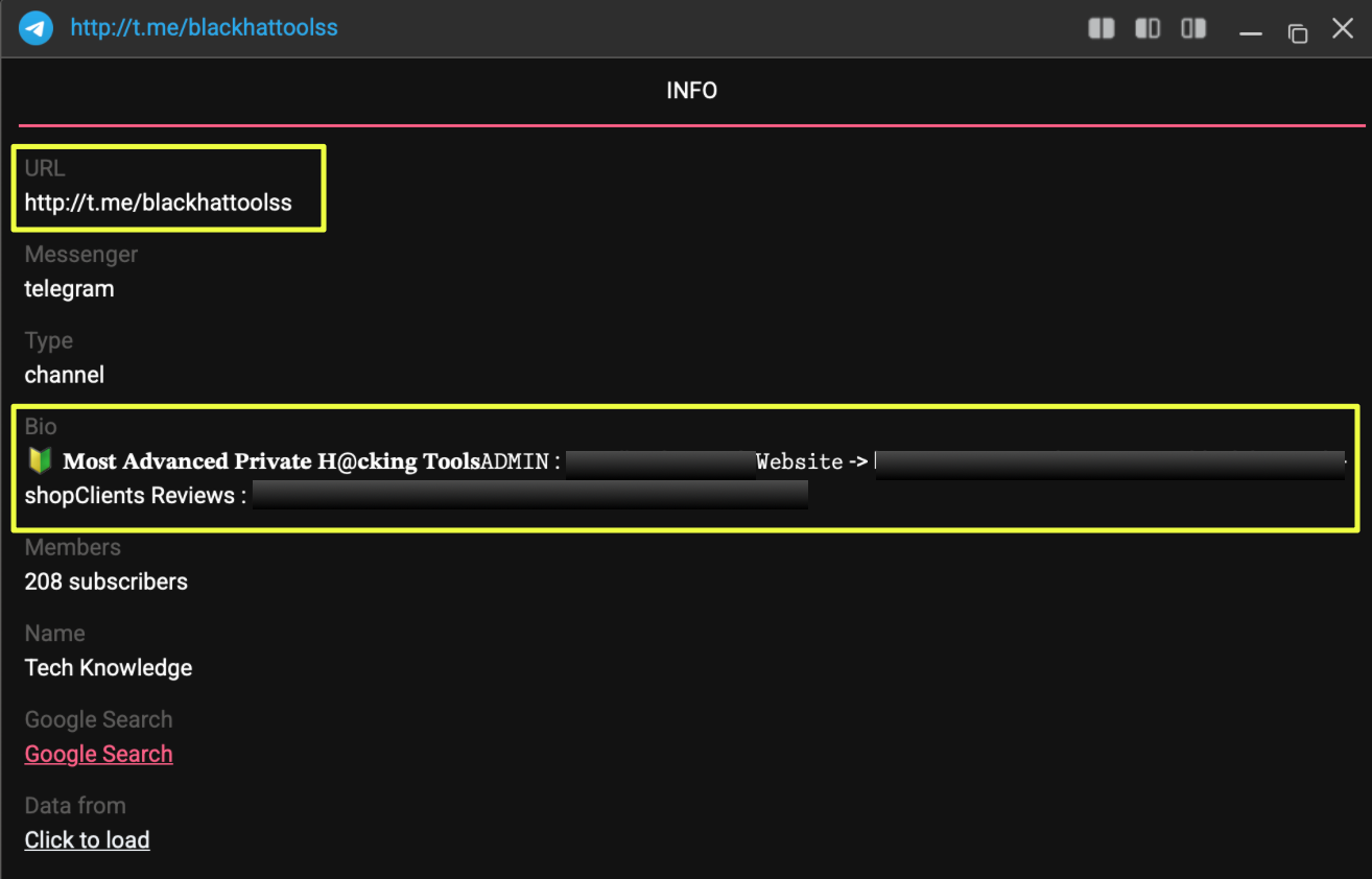 From there, users are directed toward Telegram. This is where interaction likely moves from public to private. The repeated appearance of channels such as t.me/blackhattoolss and t.me/tools4alll, along with the admin handle @real*********s, suggests that Telegram acts as the primary coordination layer: handling communication, follow-ups, and possibly transactions.
