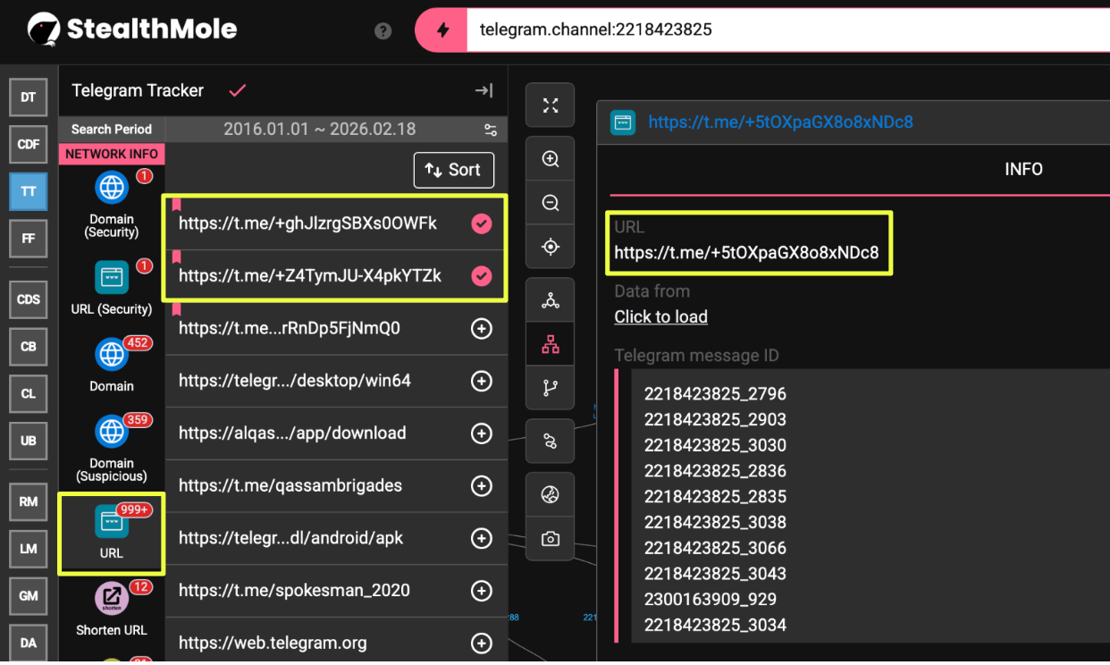 With multiple DarkForums posts redirecting users to Telegram, the investigation shifted to StealthMole’s Telegram Tracker to examine the channel linked in the breach announcements: