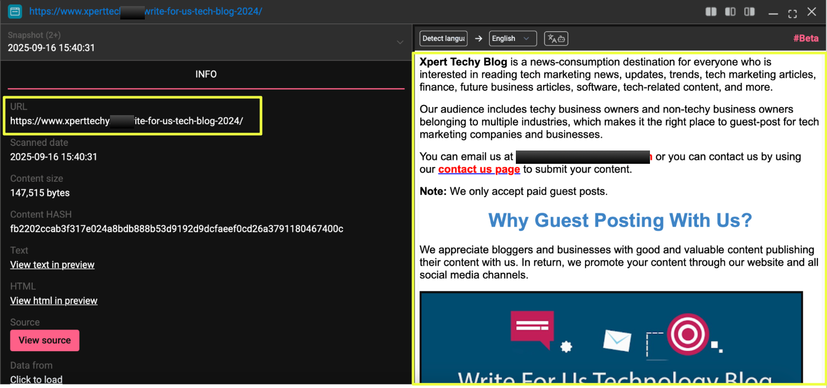 At the same time, the positioning of the website stood in contrast to the earlier findings. While forum threads and Telegram channels focused on promoting RATs, crypters, and other tools, the website presented a more neutral and in parts, legitimate image. Pages encouraging guest contributions and tech blogging did not reference any of the tools seen elsewhere.