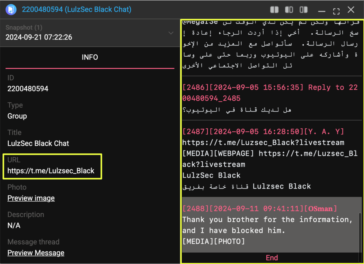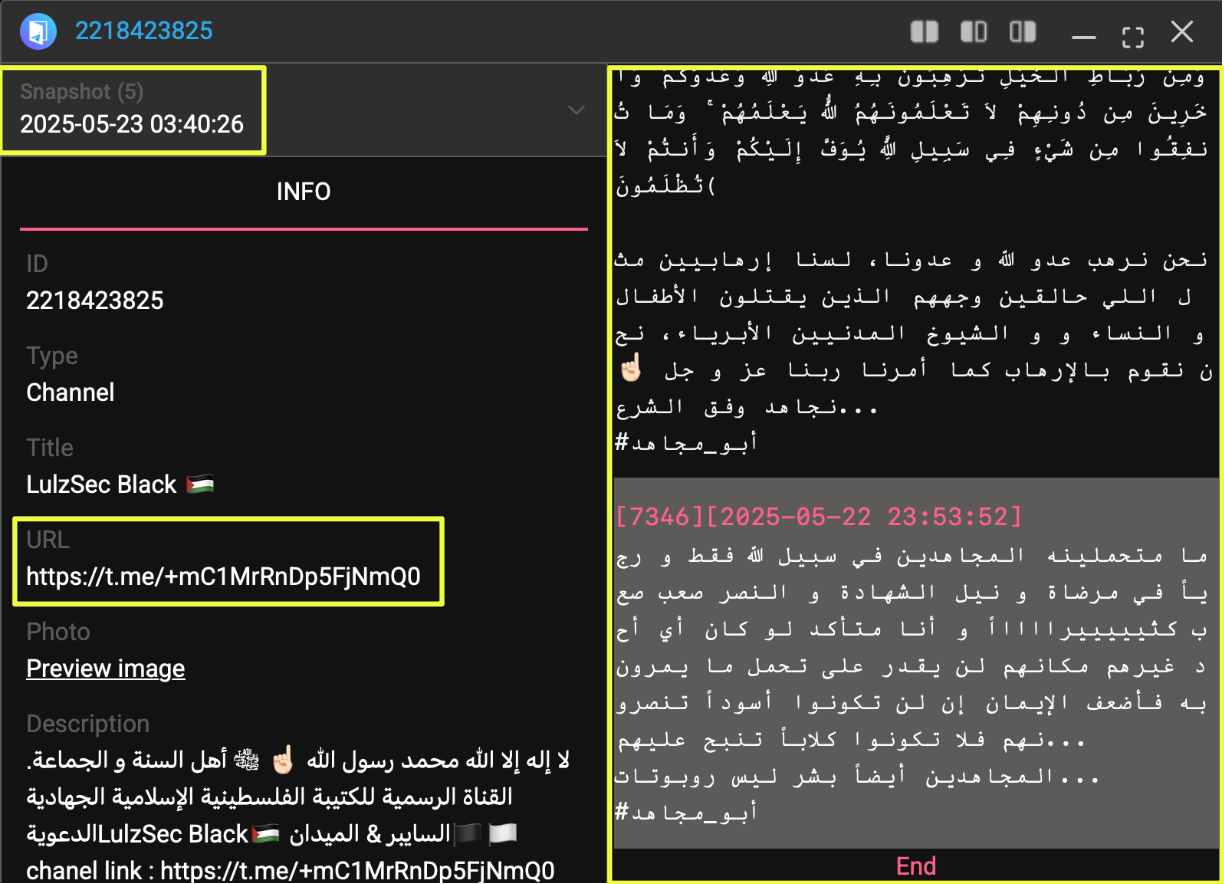Taken together, the Telegram and social media mapping revealed that LulzSec Black’s operations were not confined to isolated breach announcements. Instead, they maintained a layered digital ecosystem consisting of broadcast channels, chat groups, bot-driven contact points, tool distribution hubs, and public-facing recruitment pathways.