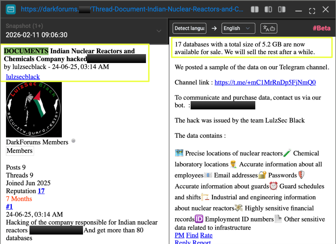 - https://darkforums.**/Thread-Document-Indian-Nuclear-Reactors-and-Chemicals-Company-hacked-C*******r