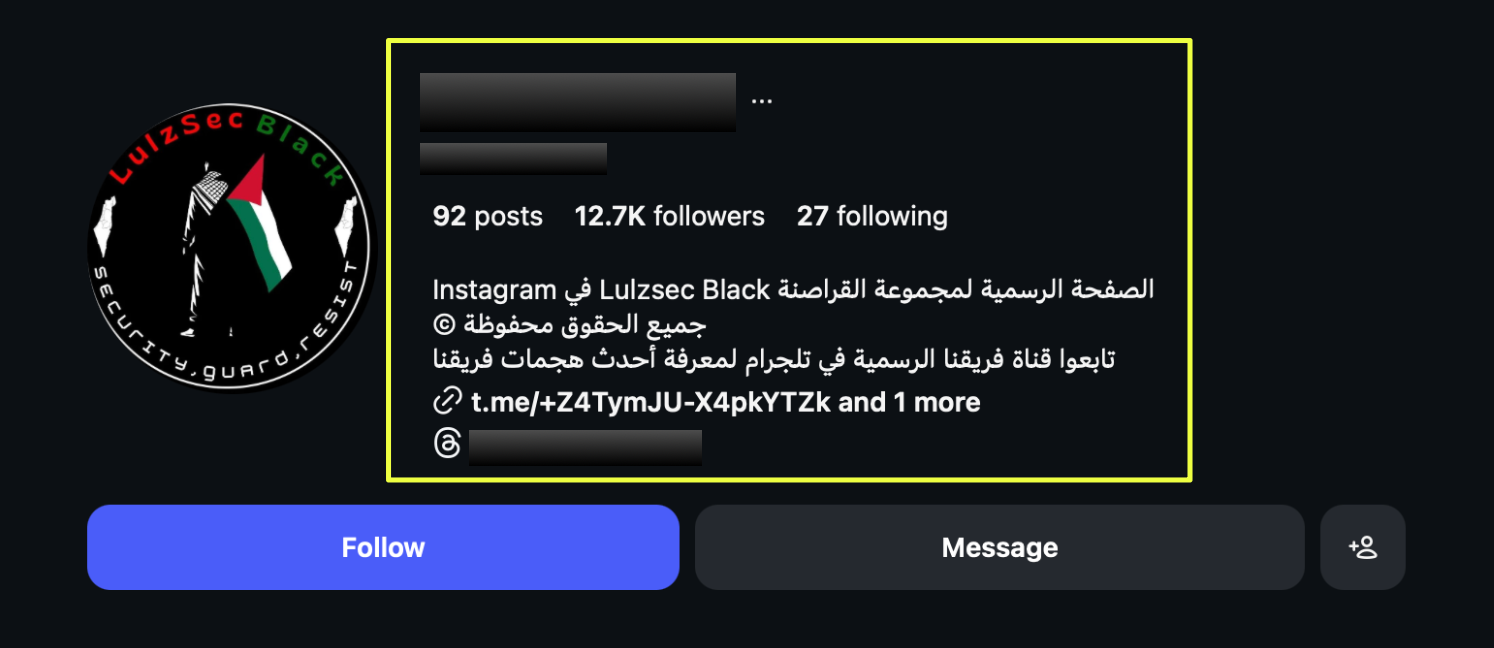 LulzSec Black is not a revival of the original collective. It does not operate in the same context, nor does it pursue the same type of targets. Instead, it presents itself as an ideologically aligned hacktivist group, blending cyber intrusions, defacements, and data leak claims with overt political messaging. Its branding heavily incorporates pro-Palestinian symbolism, religious references, and rhetoric positioning cyber activity as part of a broader resistance narrative.