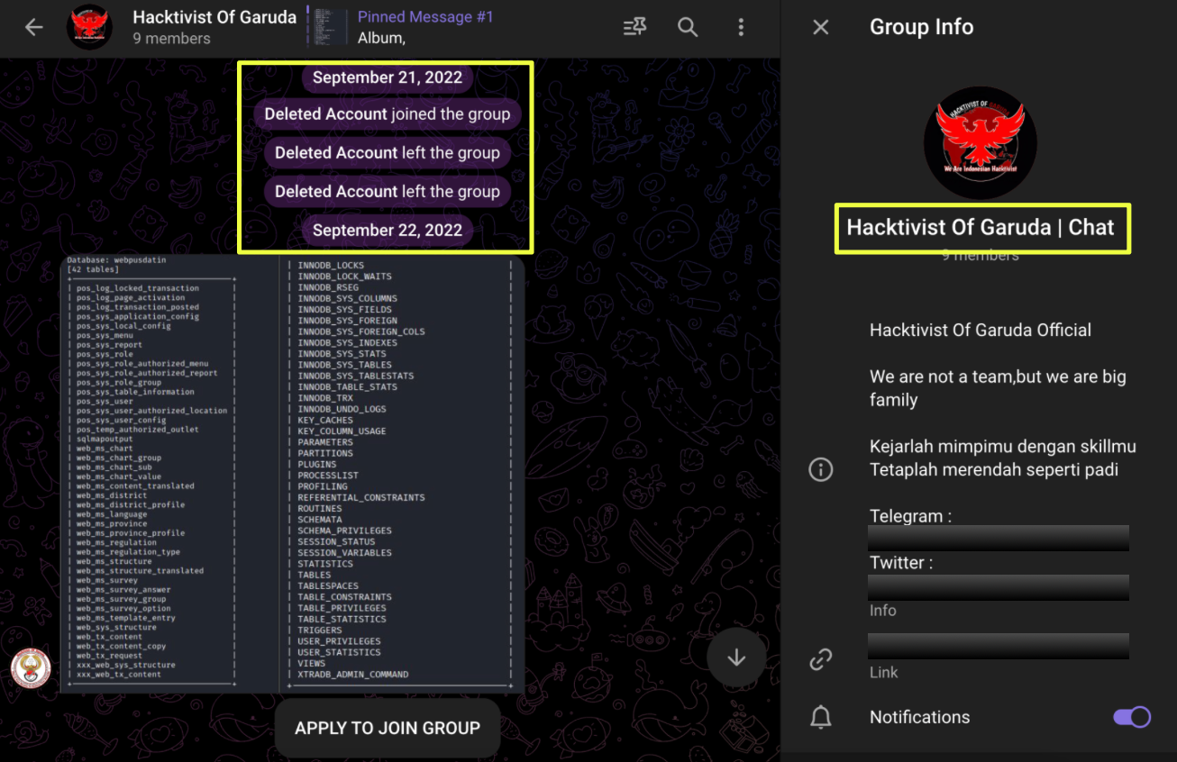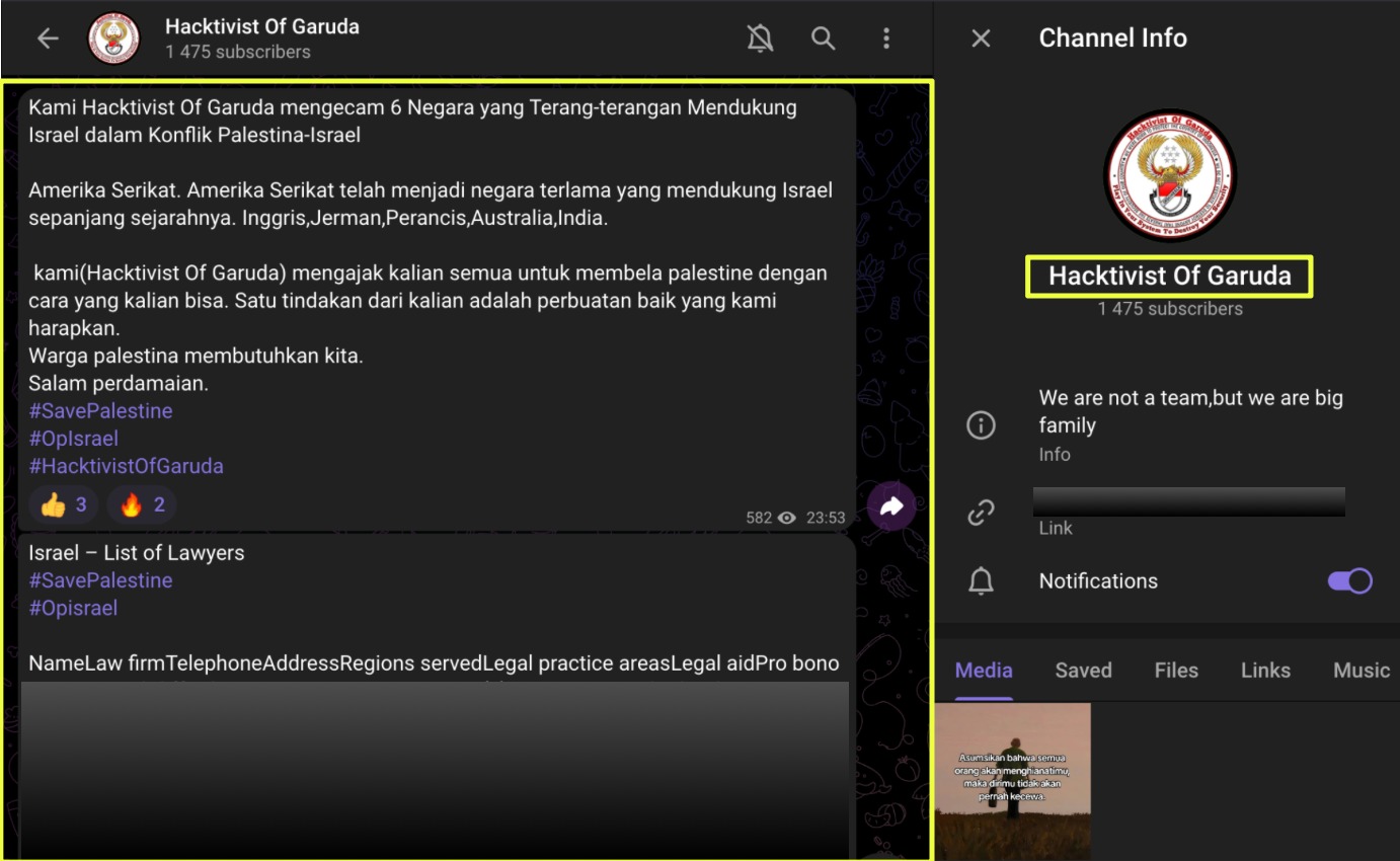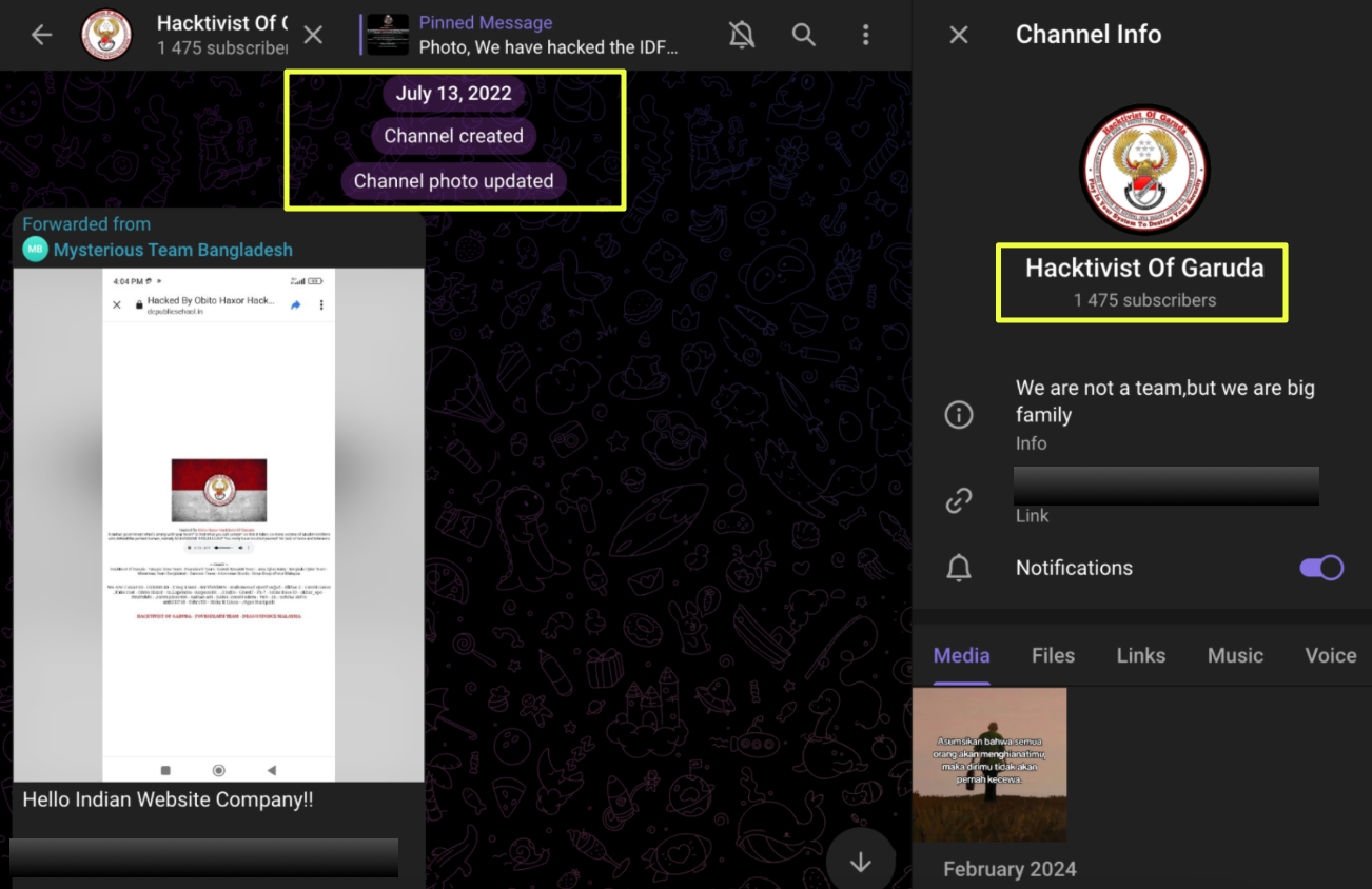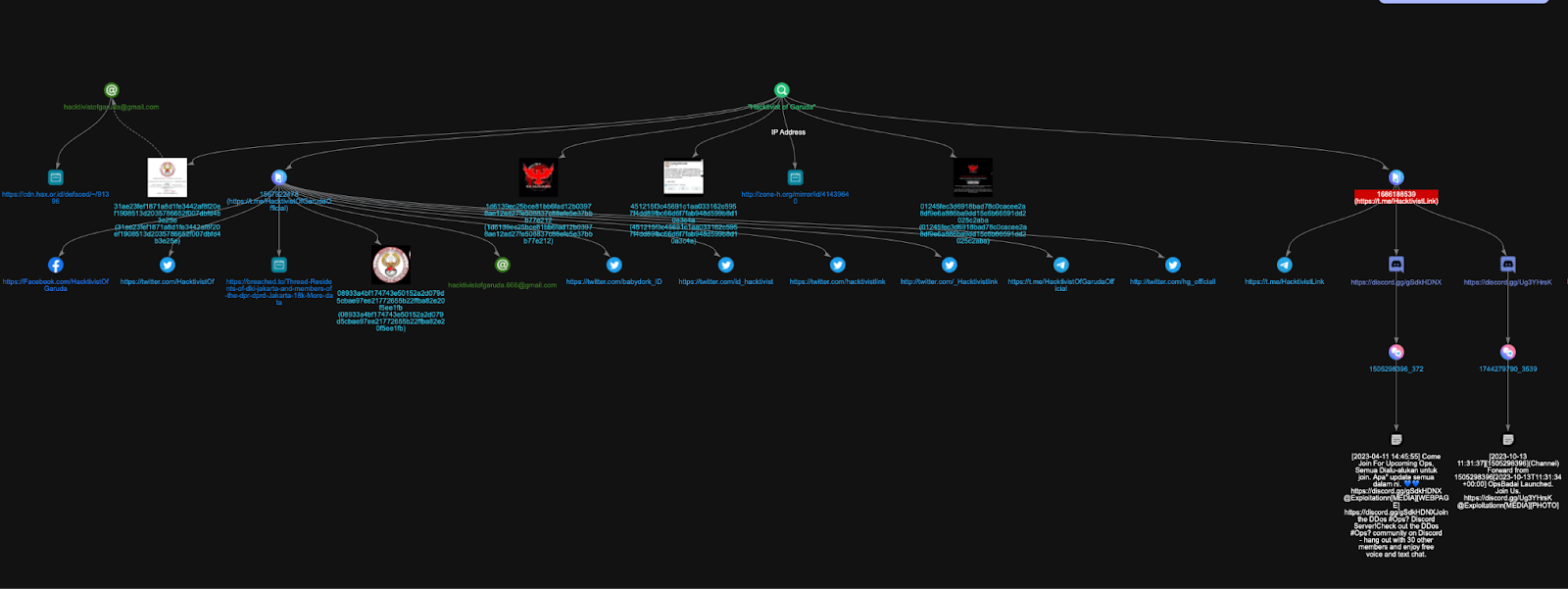 Across all these platforms, a clear picture emerges: Hacktivist of Garuda does not operate as a single team but as a distributed brand adopted by multiple Indonesian actors. Their infrastructure is resilient precisely because it is fragmented: Telegram anchors their messaging, Gmail handles their external communication, Twitter broadcasts their visibility, and Discord serves as auxiliary space during broader regional operations.