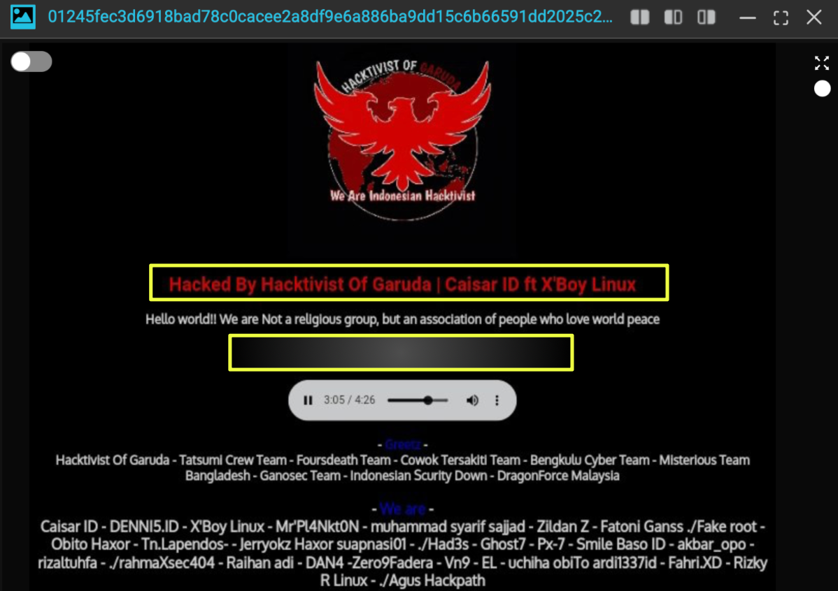 Hacktivist of Garuda does not function as a single, coherent unit. Instead, the label is carried by a rotating cast of Indonesian hacktivists who treat “HoG” less as an organization and more as a shared identity. This helps explain the group’s contradictory ideological messaging, uneven technical skill, and the wide variance in tone across their defacements and Telegram posts. When one operator speaks of peace and unity, another may declare solidarity with Palestine or frame an intrusion as retaliation against India, each revealing a different voice behind the same banner.