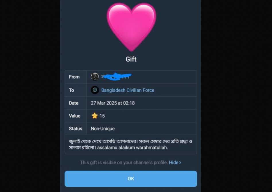 StealthMole also captured instances of Telegram users sending gifts to BCF. While gifts alone do not confirm structured funding, they do indicate sustained engagement and a degree of supporter loyalty within the ecosystem.