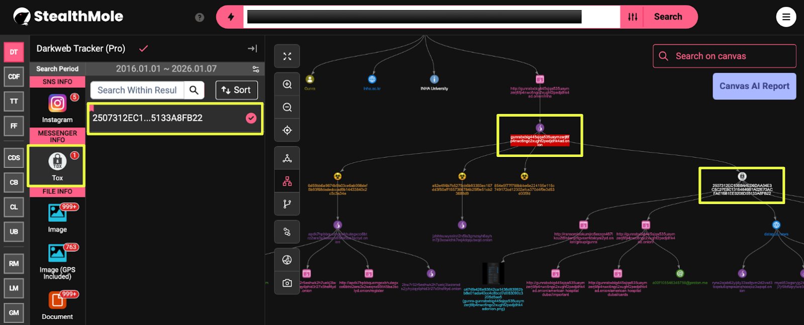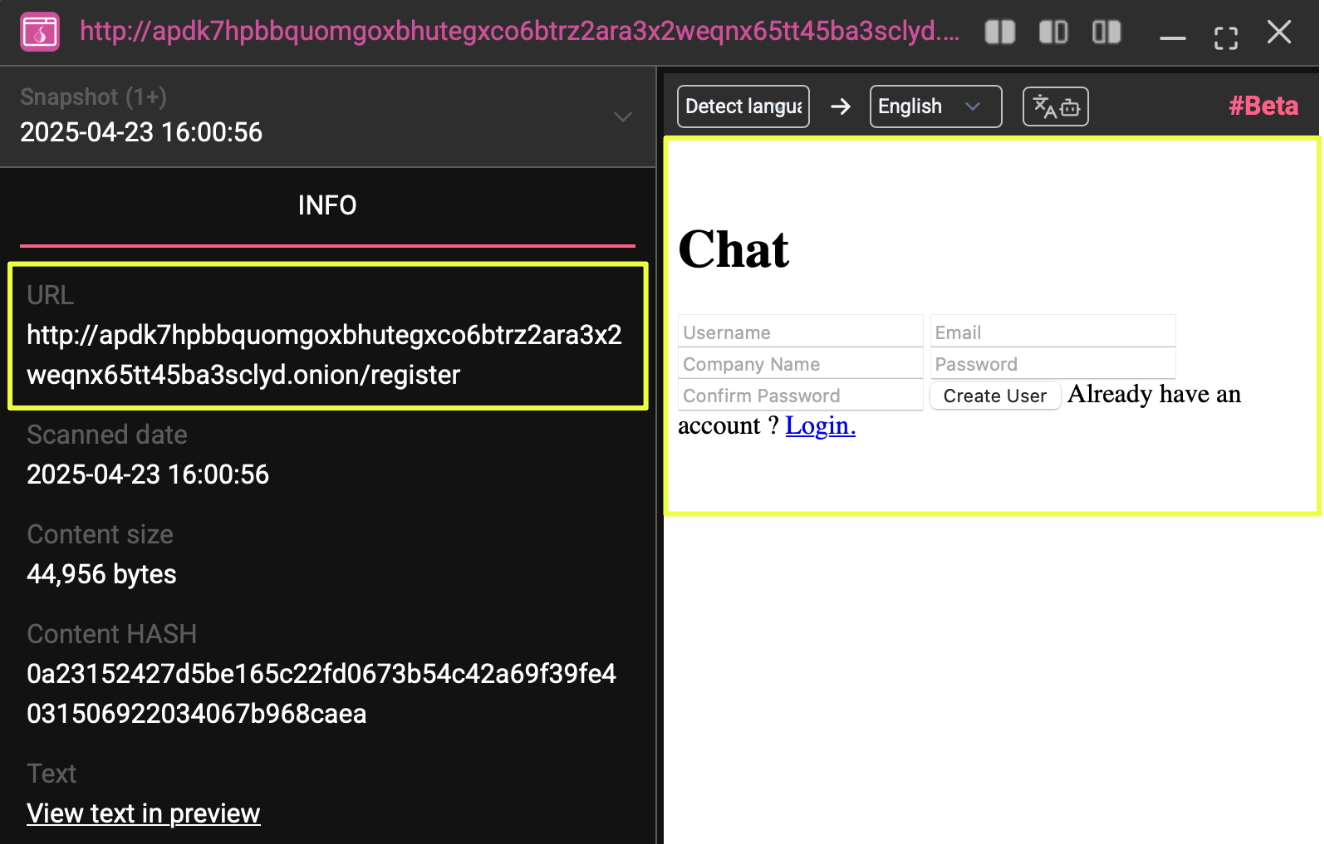 By correlating ransomware leaks, malware hashes, chat servers, communication identifiers, and surface-accessible sites, this case highlights how Gunra maintains multiple layers of exposure and contact. The reuse of identifiers such as TOX IDs and the replication of content across Tor and clearnet environments point to operational overlap rather than strict compartmentalization.
