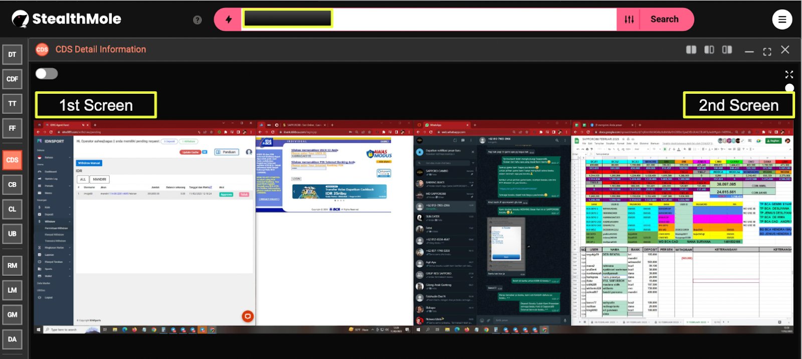 Desktop screenshots captured by the infostealer revealed that the operator was using a dual-monitor workstation, suggesting a structured and sustained operational setup rather than casual or opportunistic activity.