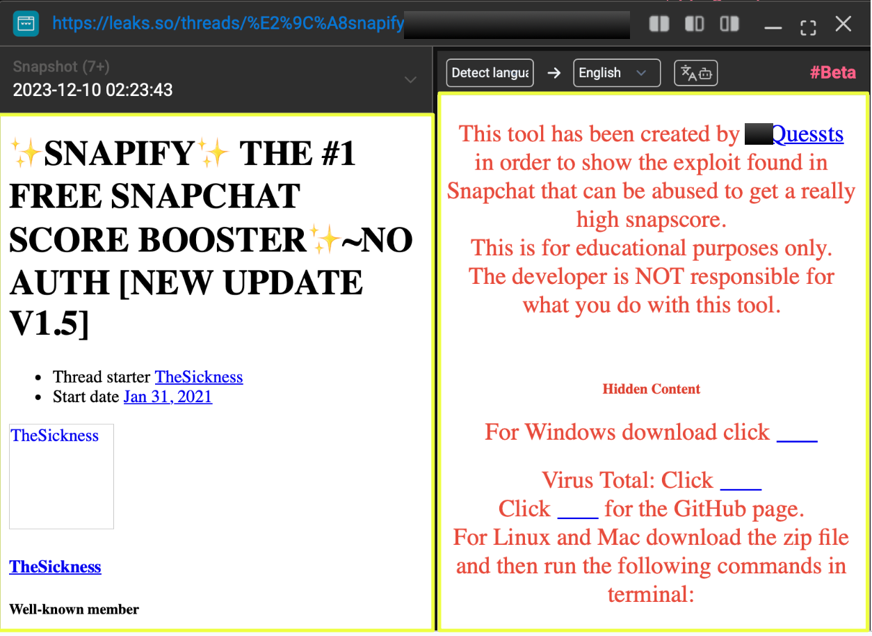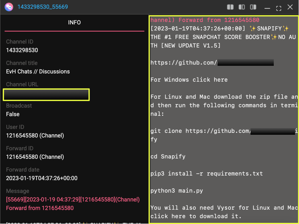 After identifying Snapify on GitHub, the next step was to determine whether the tool remained confined to open-source hosting or if it was being actively promoted within underground communities.