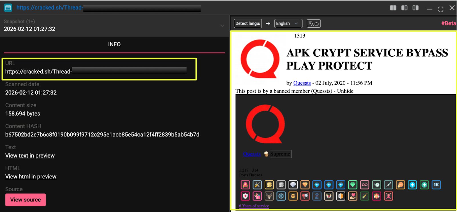 Crypting services sit at a strategic layer of the Android underground ecosystem. They act as facilitators: supporting modded apps, gray-market distributions, and potentially malicious campaigns by helping them bypass automated security filters. Even without direct malware publication, such services contribute to broader threat enablement.