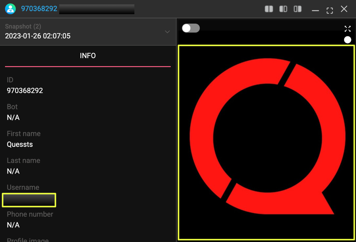 A Telegram account using the same alias was identified. The account displayed consistent branding, including the same logo previously observed in forum threads. This continuity reinforced identity persistence across platforms.
