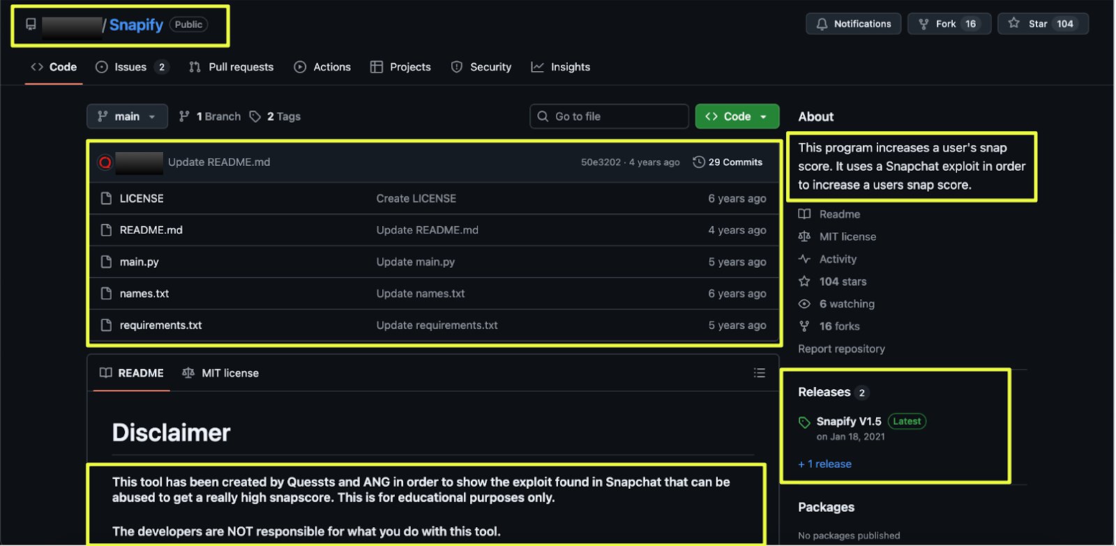 Unlike RD-Bypass-AV, which targeted endpoint security bypass, Snapify was positioned as a Snapchat exploit tool capable of artificially increasing Snap scores. The repository included structured installation instructions, platform compatibility notes, and usage documentation.