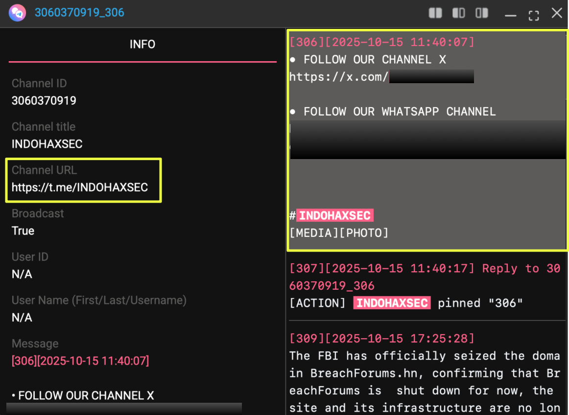 These early findings suggested that IndoHaxSec’s presence extended beyond a single breach claim and pointed toward a wider pattern of activity across multiple platforms. As a result, the investigation expanded to examine the group’s online infrastructure, including the messaging channels and forums where its operations and announcements were being promoted.